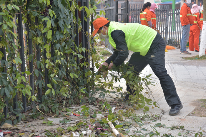 李洁、侯强、兰朝明、陶开晖、张仁茂、杨廷友、段自勇等参加清扫活动。(张继庄/文  段志丹/图)
