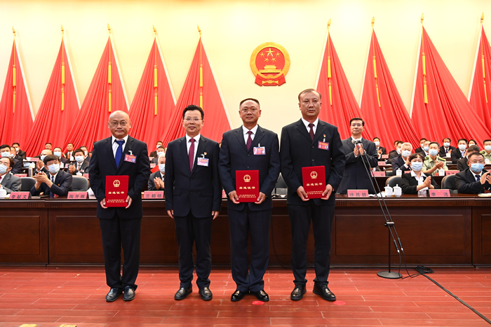 会上,大会主席团常务主席、州委书记陈明分别向马忠俊、巫运康、毕波、陈宏、钱虎颁发了当选证书。新当选的5位同志向宪法宣誓。