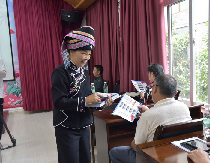 按照道德讲堂七个环节的要求,大家首先进行的是省自身,然后齐唱爱国歌曲《爱我中华》。在学模范环节,大家认真观看了《云南民族团结进步示范家庭-杨秀弟》。在诵经典环节,大家认真学习了《弟子规》中的经典名句“凡是人,皆须爱;天同覆,地同载”和梁启超的经典名句“国家兴亡,匹夫有责”。在赛知识环节,现场的干部职工争相抢答,气氛十分活跃。在诗朗诵环节,4位同志为大家朗诵了“民族团结一家亲”。在送吉祥环节,工作人员为大家送上《文山州人大常委会创建民族团结进步示范机关-知识读本》。