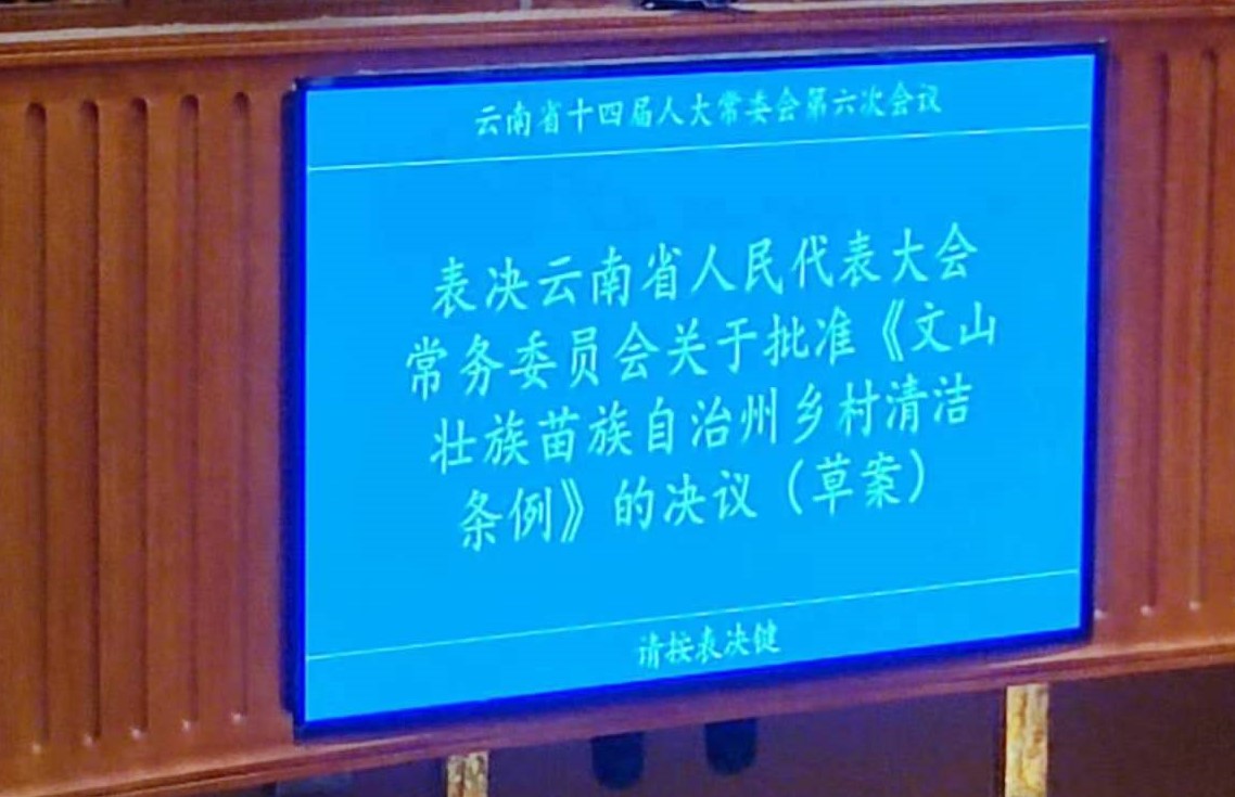 11月30日,云南省第十四届人大常委会第六次会议表决通过《文山壮族苗族自治州乡村清洁条例》。
