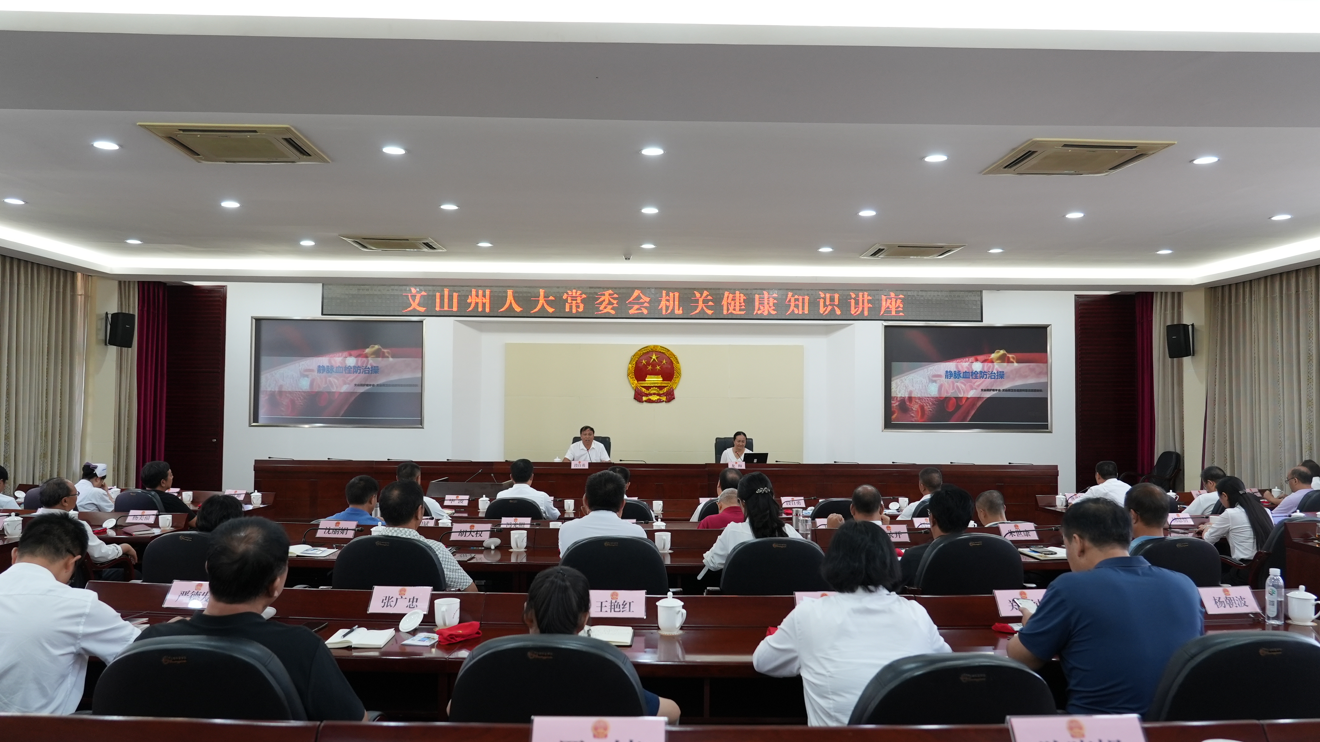 为积极推进健康机关建设,培育文明健康新风,9月25日下午,州人大常委会机关邀请文山州护理学会秘书长、州医院离退休管理科科长龙梅一行到机关开展健康知识讲座。