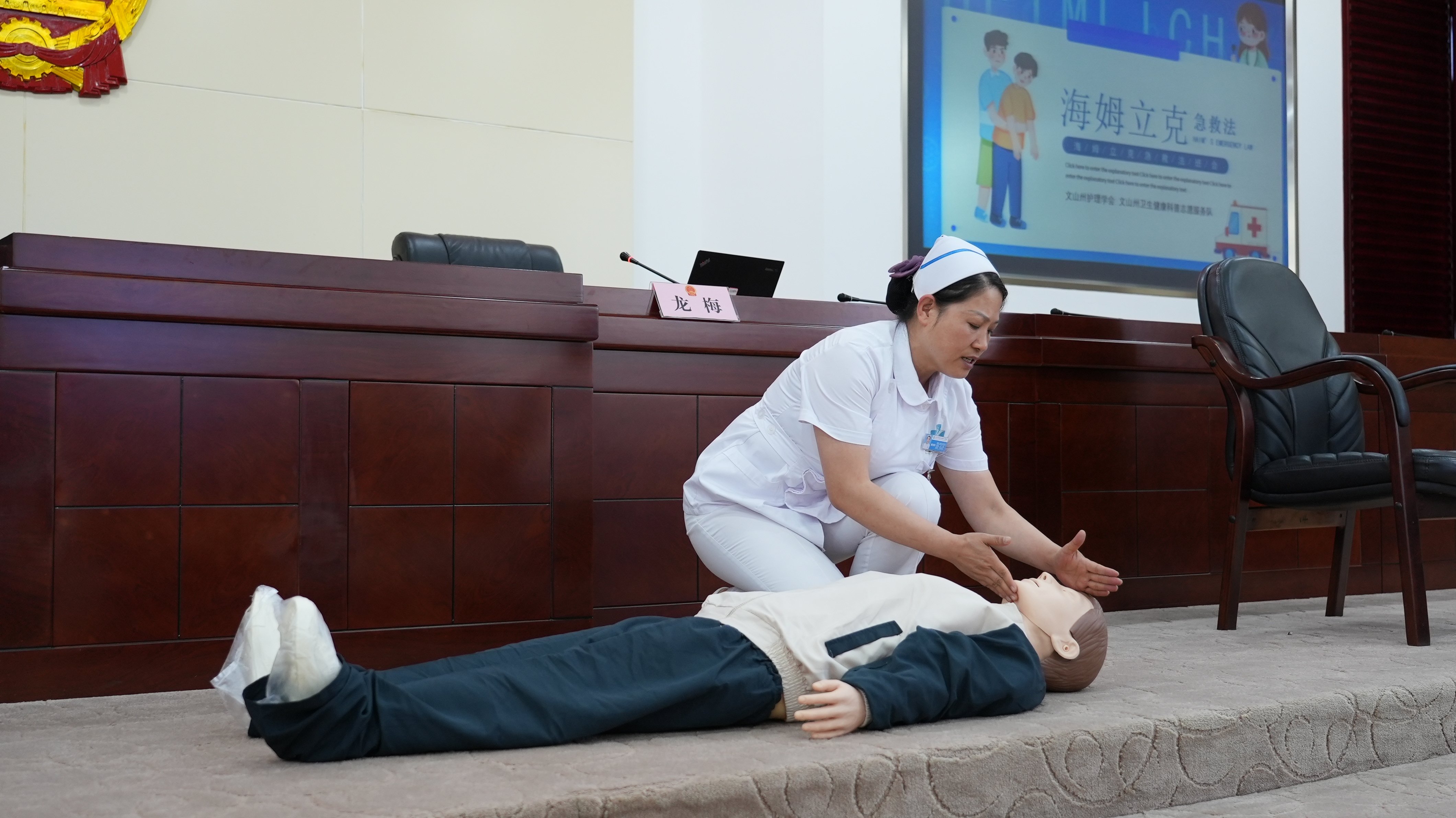 “什么是高血压?”“高血压有什么症状?”围绕一系列问题,龙梅结合自身多年丰富经验,围绕慢性疾病防治,用深入浅出的语言介绍了高血压、痛风等疾病形成原因、预防措施等,有针对性地教大家如何辨别和自我筛查病症,同时呼吁大家要做到关注自身健康,定期体检,及时发现潜在的致病危险因素,积极进行干预,早发现、早诊断、早治疗。此外,医护人员还对干部职工进行海姆立克急救法、徒手心肺复苏、AED规范操作进行了培训。