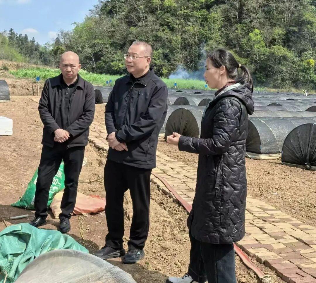 刀锦祥一行先后实地察看大栗树乡大马固、板桥、那衣龙等8个村委会冬早玉米豆类复合种植、油菜种植、柴胡及黄精等中药材种植、蜜蜂养殖和文旅产业布局等情况,全面掌握该乡产业发展总体情况。