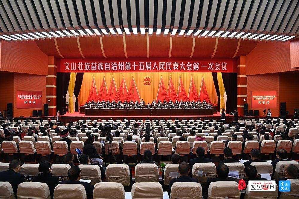 2月13日上午,文山壮族苗族自治州第十五届人民代表大会第一次会议圆满完成各项议程,在文山市会务中心报告大厅顺利闭幕。